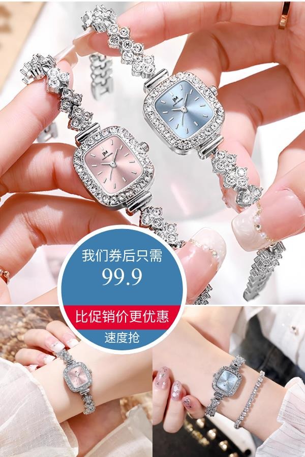 【情人节礼物】DOM联名JM轻奢ins风满钻女表,139道工序精制,闪耀吸睛,送女友/老婆超有面子!限量发售,品质与颜值并存,心动不如行动!