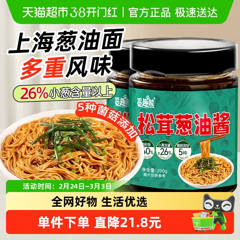 【天猫超市独享优惠】松茸葱油酱,精选优质原料,口味浓郁醇厚,适合各种美食搭配使用。轻松满足您的味蕾需求!快来选购吧!