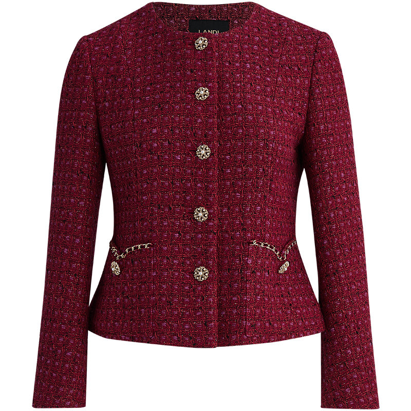 【都市丽人必备】LANDI酒红色绵羊毛通勤圆领小香风短外套,黄金比例腰身设计,简约而不失优雅。精选优质面料,穿着舒适透气。无论是上班还是休闲场合,都能让你成为焦点。快来吧!