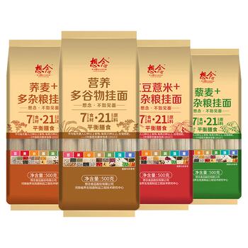 店铺首单礼金【想念】营养多谷物杂粮挂面低脂低钠,七谷七合、薏米红豆、高纤、黑豆4种口味满足不同味蕾需求,7类食材21种原料满足营养搭配,营养全面吃的放心~