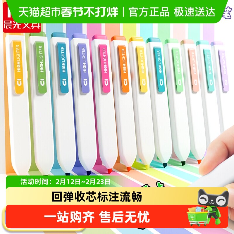 晨光M&G品牌推荐的这款荧光笔,采用软笔头设计,多色可选,方便使用。按下按钮即可发出明亮的荧光效果,适用于各种场合下的书写和标记。无论是学习还是工作,都能让你的工作更加高效。快来试试吧!
