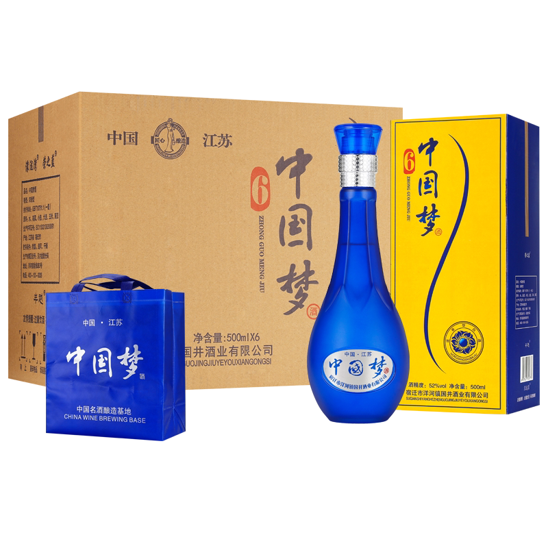 推荐:中国梦白酒6瓶整箱52度浓香型酒水500ml高度纯粮食原浆酒