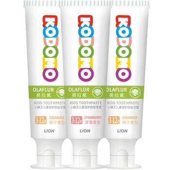 推荐:狮王德国进口奥拉氟3-12岁儿童16H防蛀牙膏草莓橙子含氟