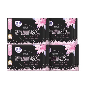 ⭕洁婷透气超薄樱花卫生巾加长夜用组合16片