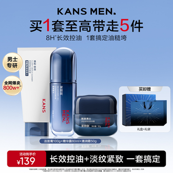 【淘金币13.45,官方补贴47.9,精致生活券抵12.9,凑消费券到手86.8元】韩束男士护肤品水乳护肤套装,超赞~