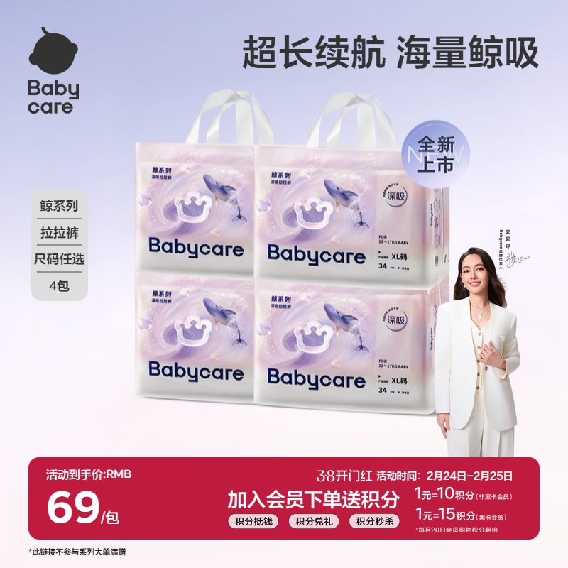babycare鲸系列深吸拉拉裤,采用天然面料,透气性好,让您安心使用。适合不同年龄段的宝宝,无论是深睡还是活跃期,都能提供舒适的睡眠体验。独特的设计,让宝宝在睡觉时也能保持干燥,避免尿布疹的发生。妈妈们也可以放心选择,这款拉拉裤不仅方便快捷,而且时尚美观,是您宝宝的佳选择。