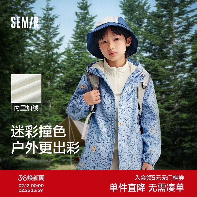 推荐:森马儿童外套2025新款潮流满印加绒保暖连帽男宝上衣春季厚款春装