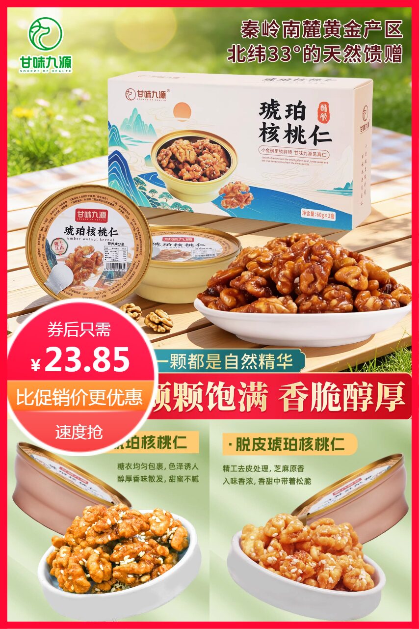 【天降+金币约19元】琥珀色光泽+酥脆不腻!甘味九源精选新疆核桃仁,古法熬制零添加,原味纯粹越嚼越香~办公室解馋、追剧充能刚刚好~