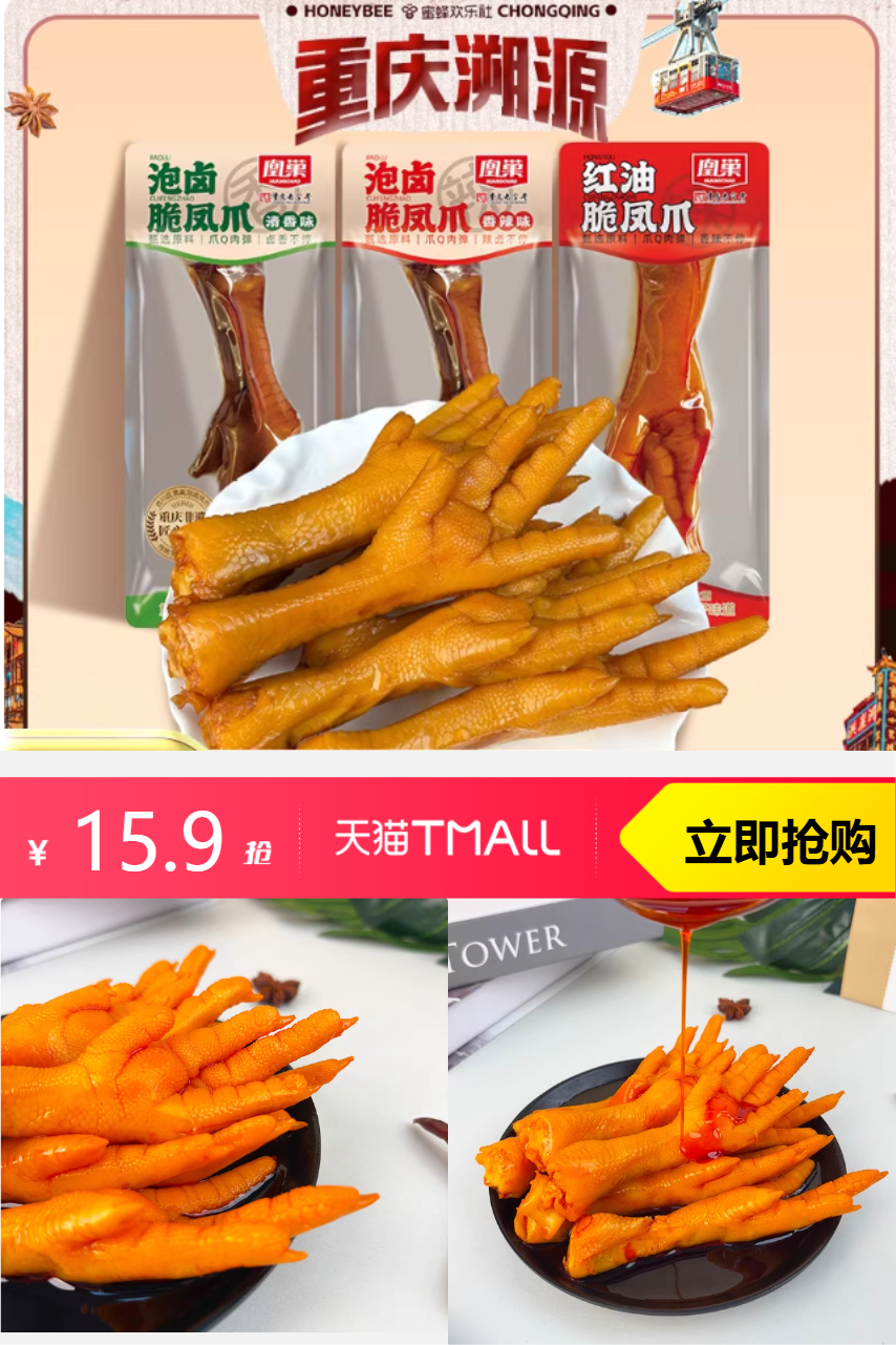 【原价24.9-立减3-淘客券6-金币0.49=15.41】轻轻一咬,满口香浓红油与肉香交融,细腻口感让您欲罢不能。凰巢红油凤爪的独特风味和回味无穷的口感,定会成为您生活中的小确幸。