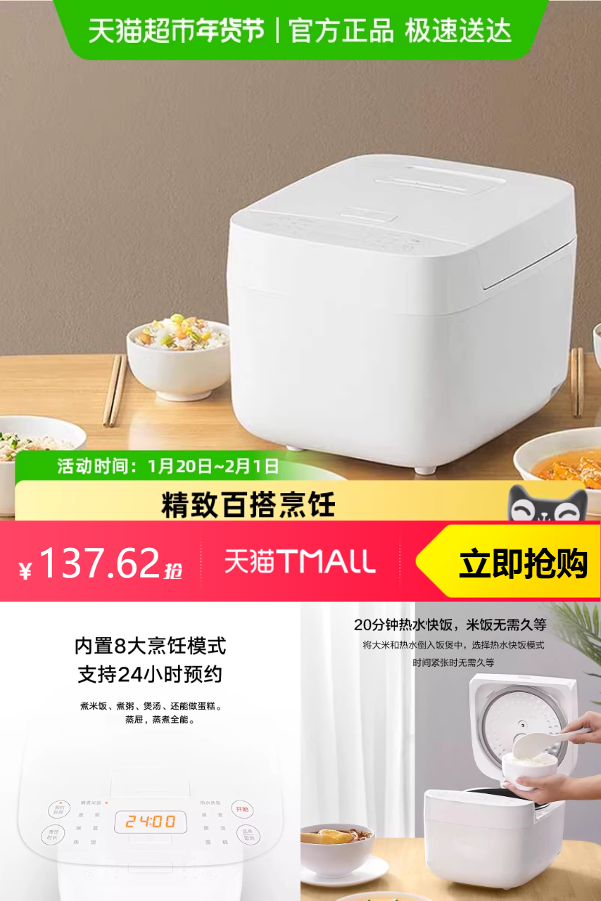 【官方立减45,超市补贴15,满5.01减5,淘金币抵16.38,到手价137.62】标价219,立减40,标题199-20元券,淘礼金11.77,详情页淘金币抵扣16.38元,政府补贴6%,到手123元,凑单消费券106.52元蒸煮炖焖一键切换,操作便捷,适合家庭使用,品质保障,现购享优惠价!