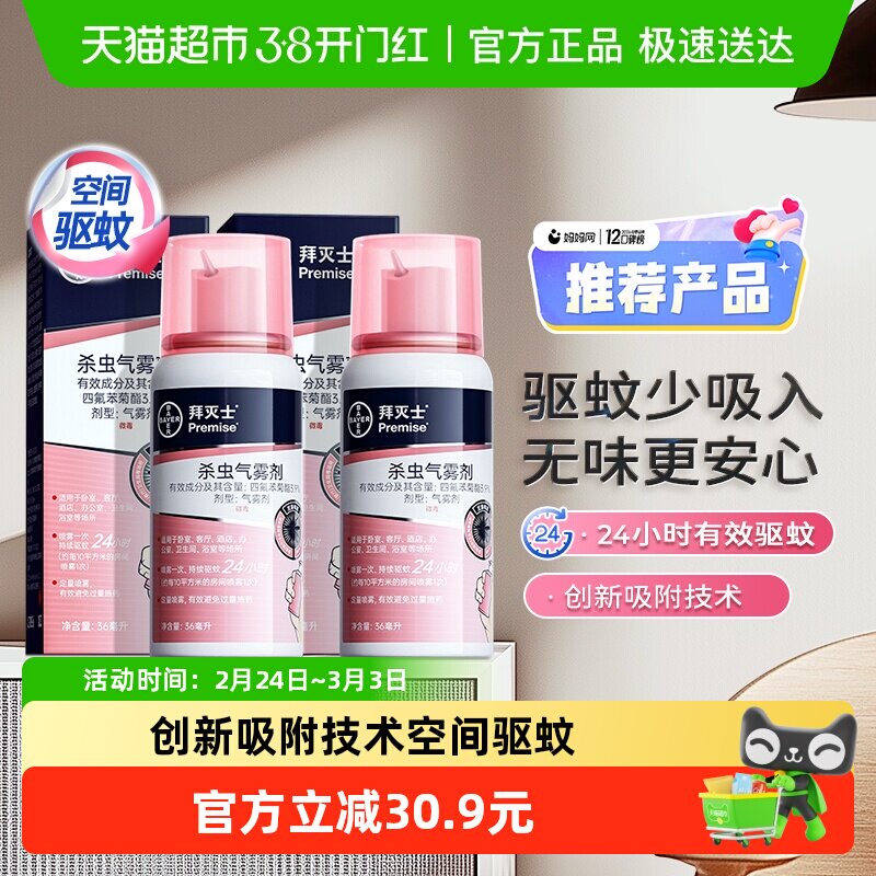 推荐:拜灭士拜耳驱蚊水强力杀蚊36ml*2