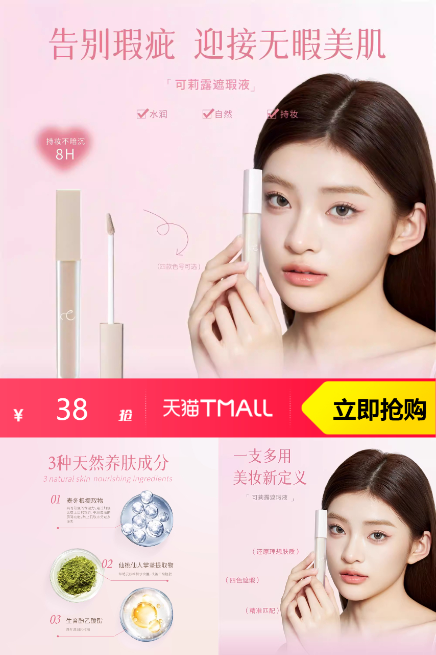 【官方立减10.7,满59减20,单品直降19.3,淘金币减1,到手价38】可莉露遮瑕液两支遮盖痘印眼袋黑眼圈泪沟,品质优选~