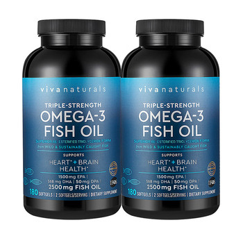 20点限时立减107元,单瓶才划285元,viva美国原装进口鱼油胶囊180粒*2,富含天然omega-3脂肪酸,保护心脑健康,脑黄金DHA有效减少动脉硬化中风风险,降低血液粘。