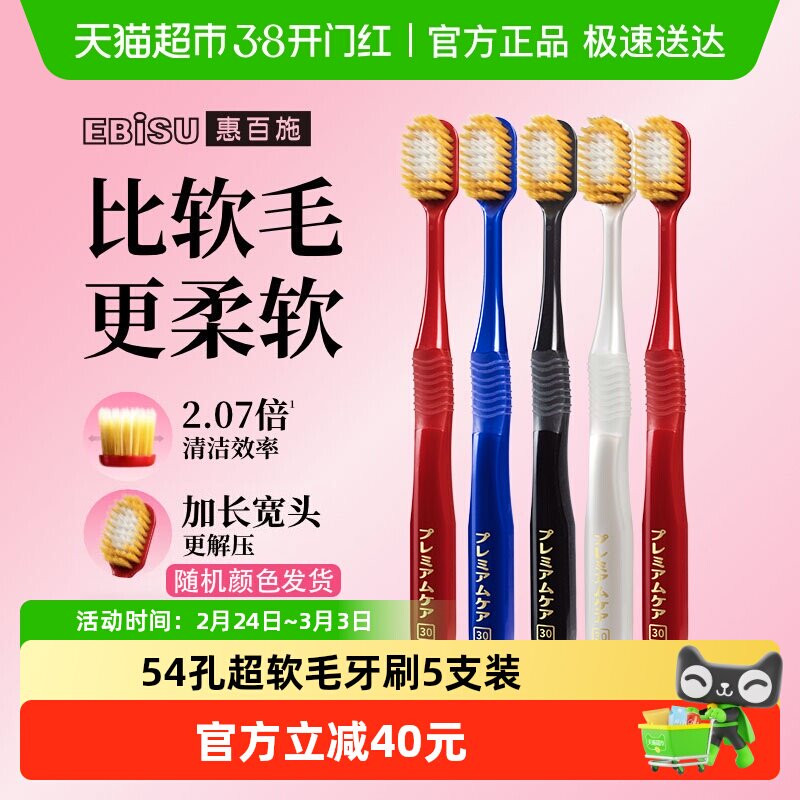 推荐:(颜色随机)惠百施日本进口宽头护龈牙刷超软毛54孔5支成人组合