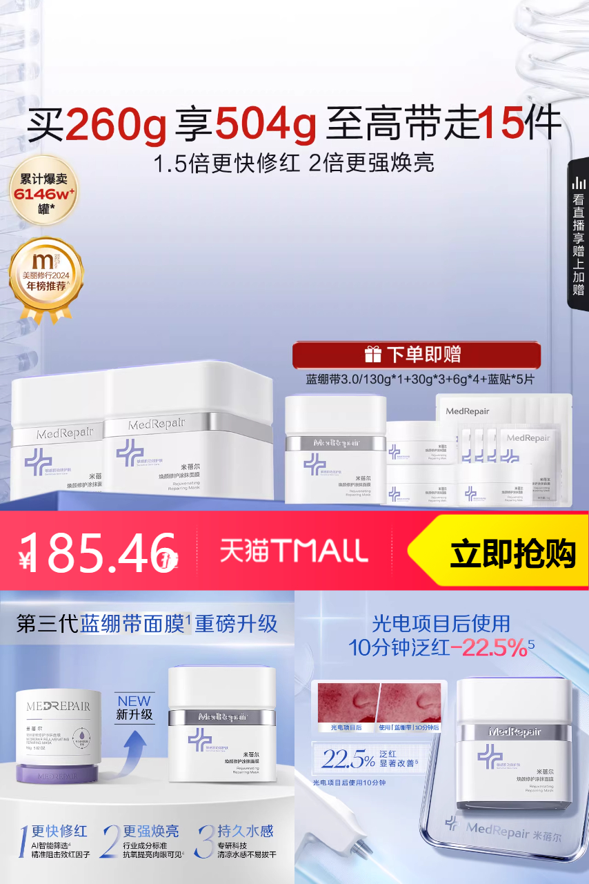 米蓓尔 米蓓尔蓝绷带涂抹面膜第三代130g 288元减102.54 商品纠错