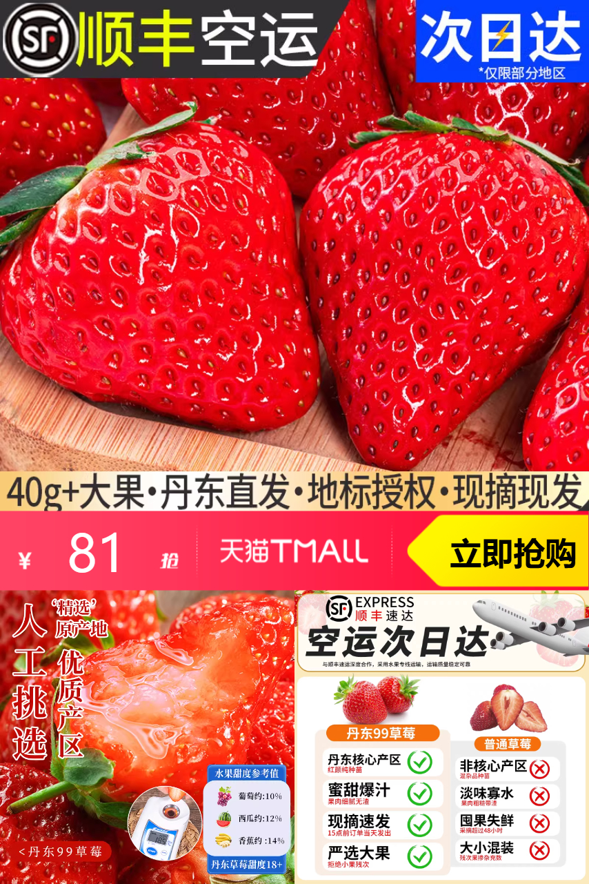 【原价156-立减70-淘客券5-金币26.52-限时红包1-88折消费券6.57=46.91,叠回购礼金4,到手42.91】辽宁丹东的绝配,99草莓,新鲜美味!超大红颜,久久回味,孕妇首.选!官方旗舰店,品质保证,放心选!当季水果,鲜甜可口,尽享自然味!甜蜜好果,满足你的味蕾!