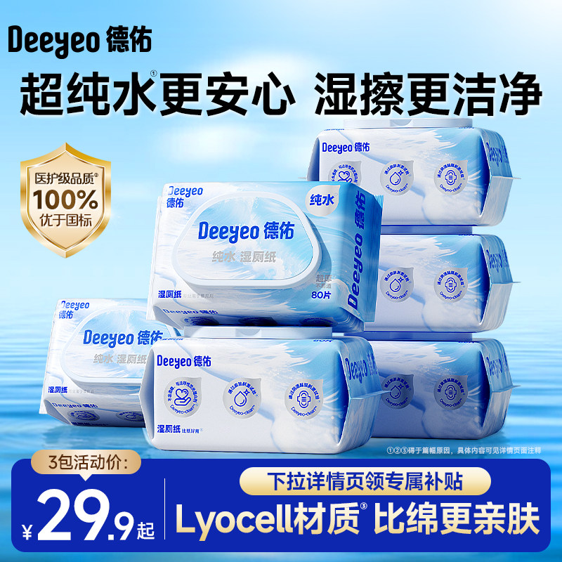 德佑旗舰店新推出湿厕纸套装,专为家庭使用设计,适合男性女性使用,无刺激性,透气性强,有效吸收水分,保持干燥。选用高品质原料制作,环保健康,满足您的需求。
