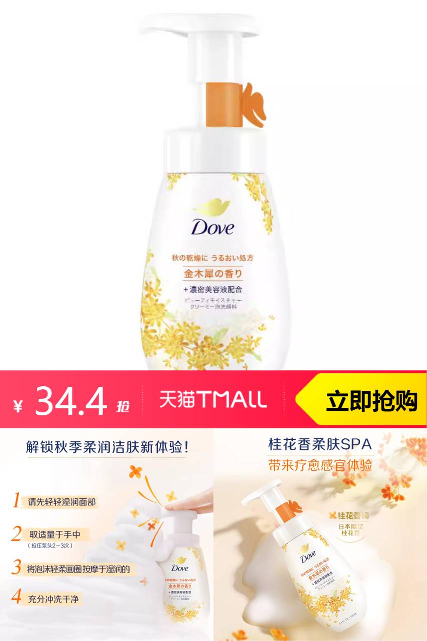 多芬 限定!多芬金桂花香洁面慕斯泡泡150ml 70.9元减29.5 商品纠错