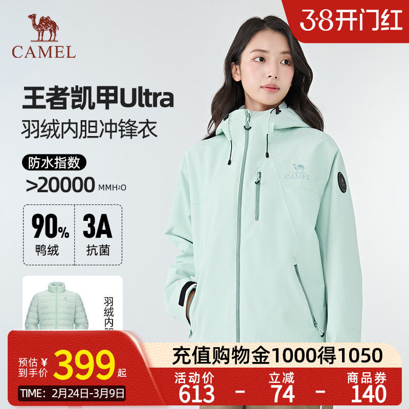 推荐:【王者凯甲Ultra】骆驼羽绒内胆冲锋衣户外防水登山外套B007男女