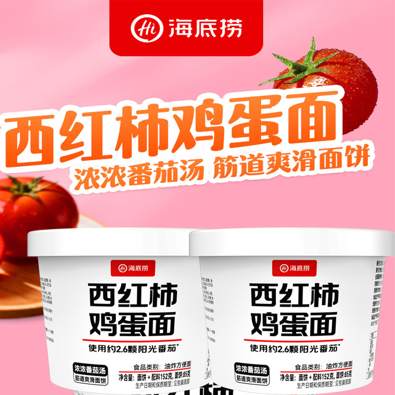 回购无数次!蕞经典的口味根本吃不腻!海底捞•西红柿鸡蛋面152g*6桶20亓,折3.3亓/桶平均使用2.6颗阳光番茄制作!番茄味超浓郁!QQ弹弹的面条搭配番茄汤底!开胃好吃!
