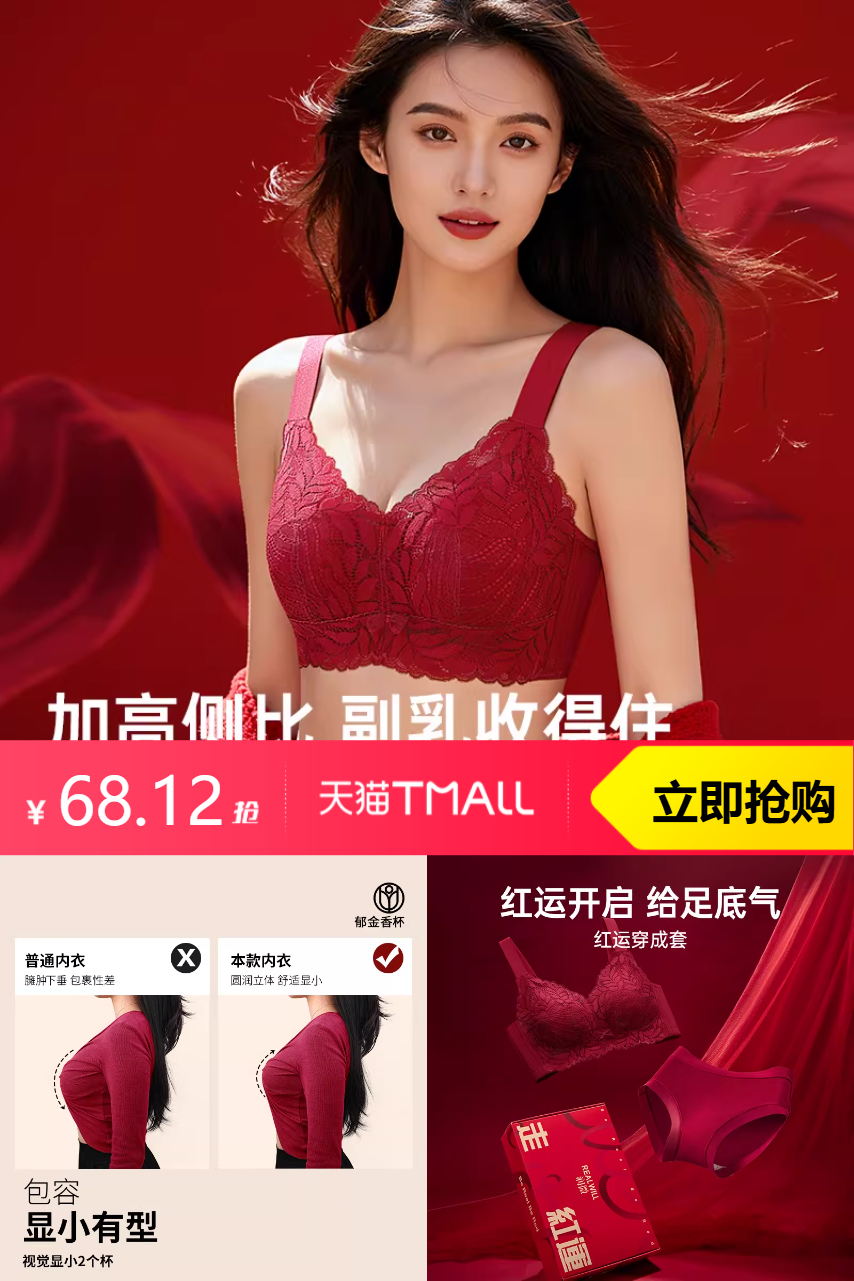 推荐:润微本命年红色内衣蕾丝文胸罩