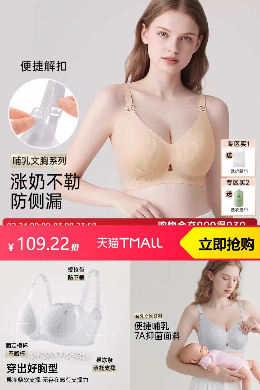 【官方立减17,服饰券满99减10,淘金币抵2.78,满200减25消费券减13.16,到手价96.06】润微孕妇哺乳内衣女薄文胸聚拢防下垂收副乳,超薄凉感7A级抑菌,无痕哺乳。这是一款为产后哺乳设计的内衣轻薄、裸感、无痕果冻条+便捷开扣设计:单手一键开扣,安心哺乳!快来试试吧!