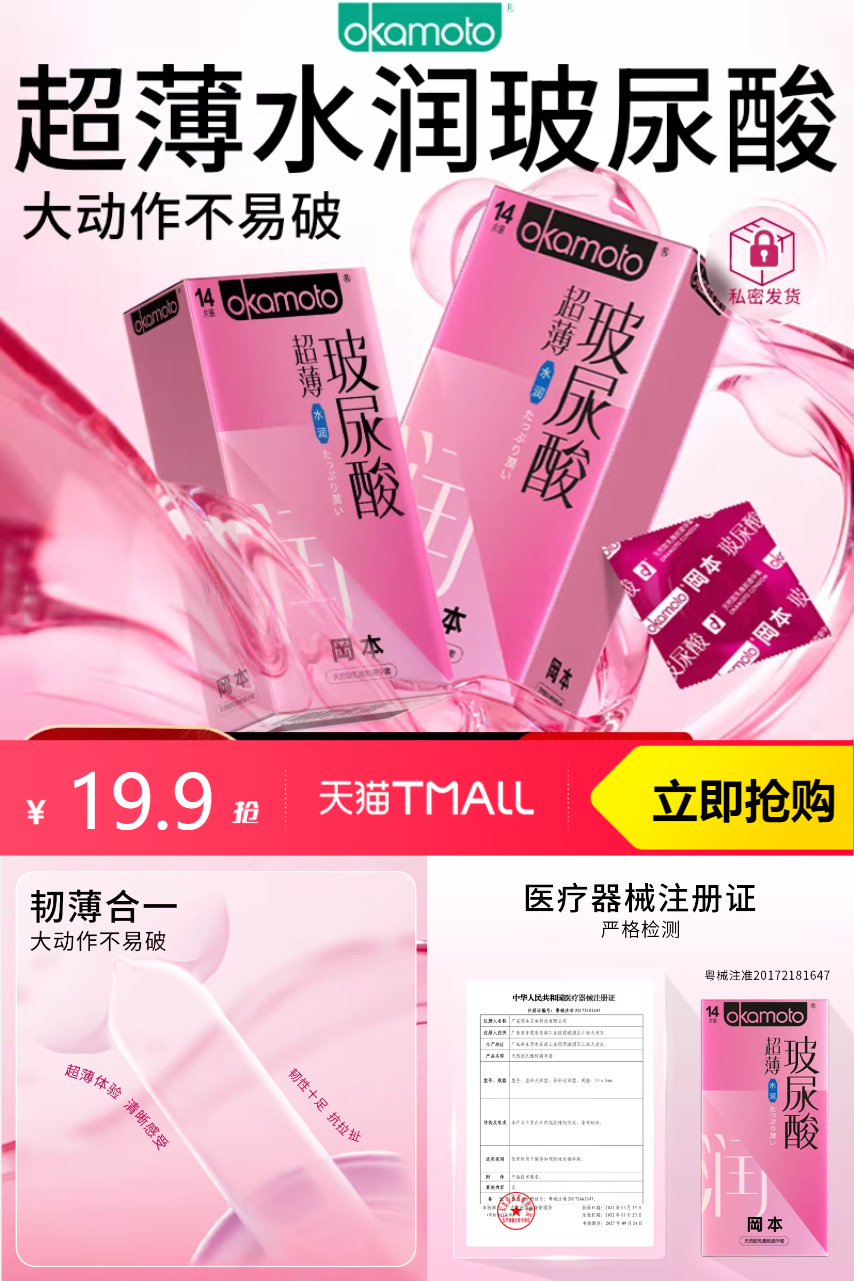 ⭕冈本超薄玻尿酸超薄避孕套安全水润套13只