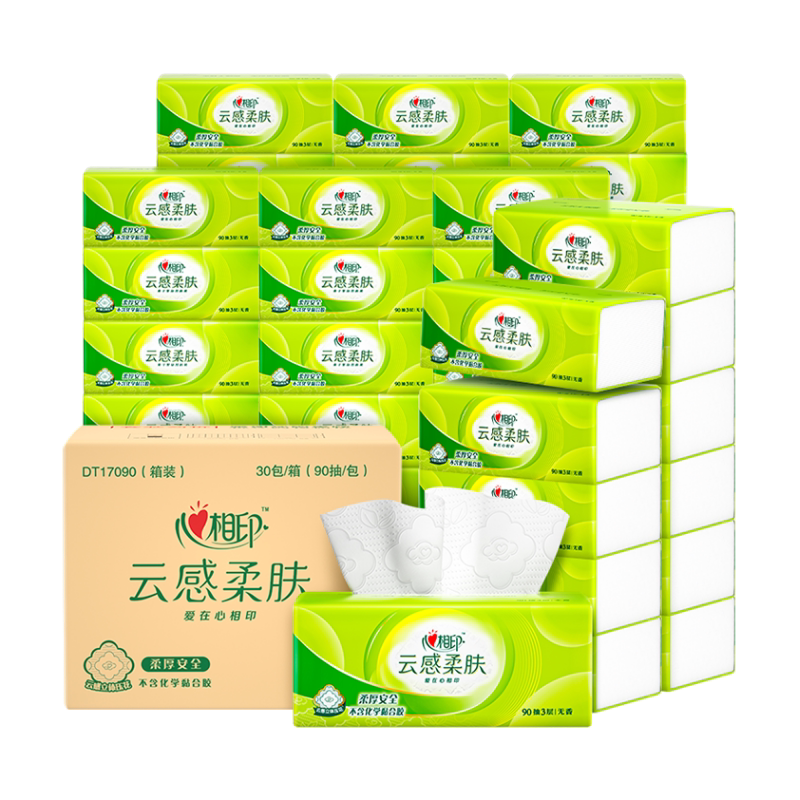 推荐:心相印云感柔肤抽纸巾M码100抽餐巾纸整箱家用实惠装擦手纸面巾纸