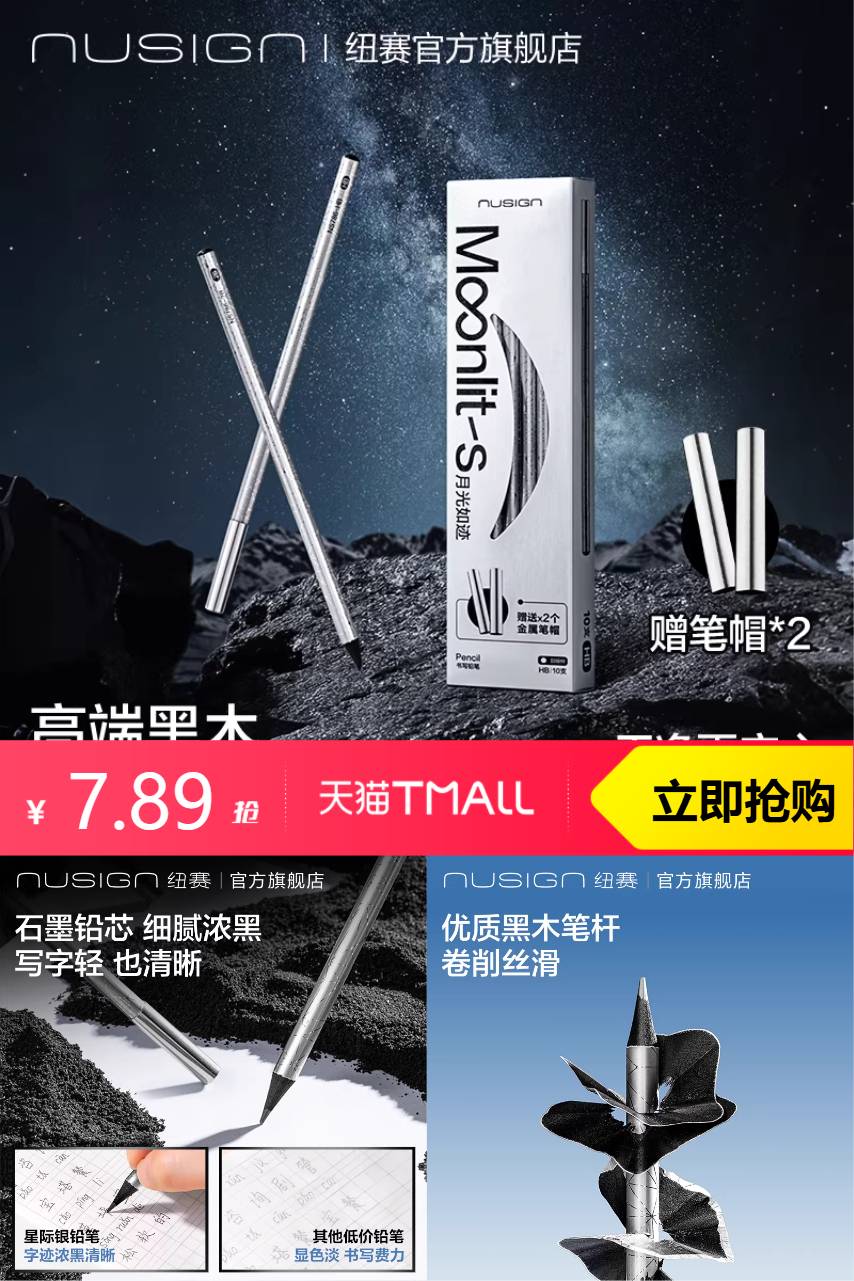 纽赛星际银圆杆HB/2B铅笔10支+笔帽 12.8元减3.91 商品纠错