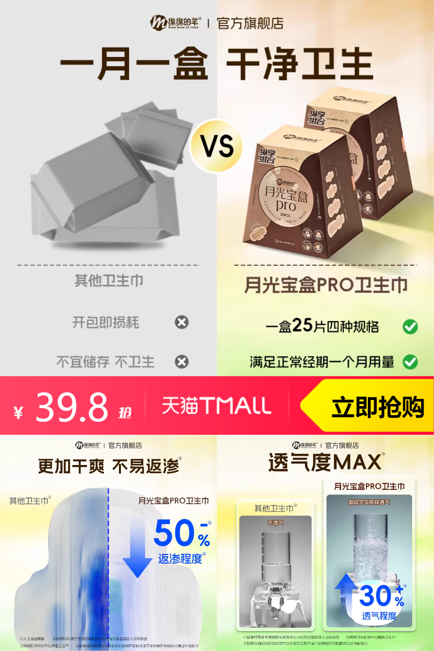 绵绵的羊月光宝盒pro2盒+ 日安裤2包 49.8元减10 商品纠错