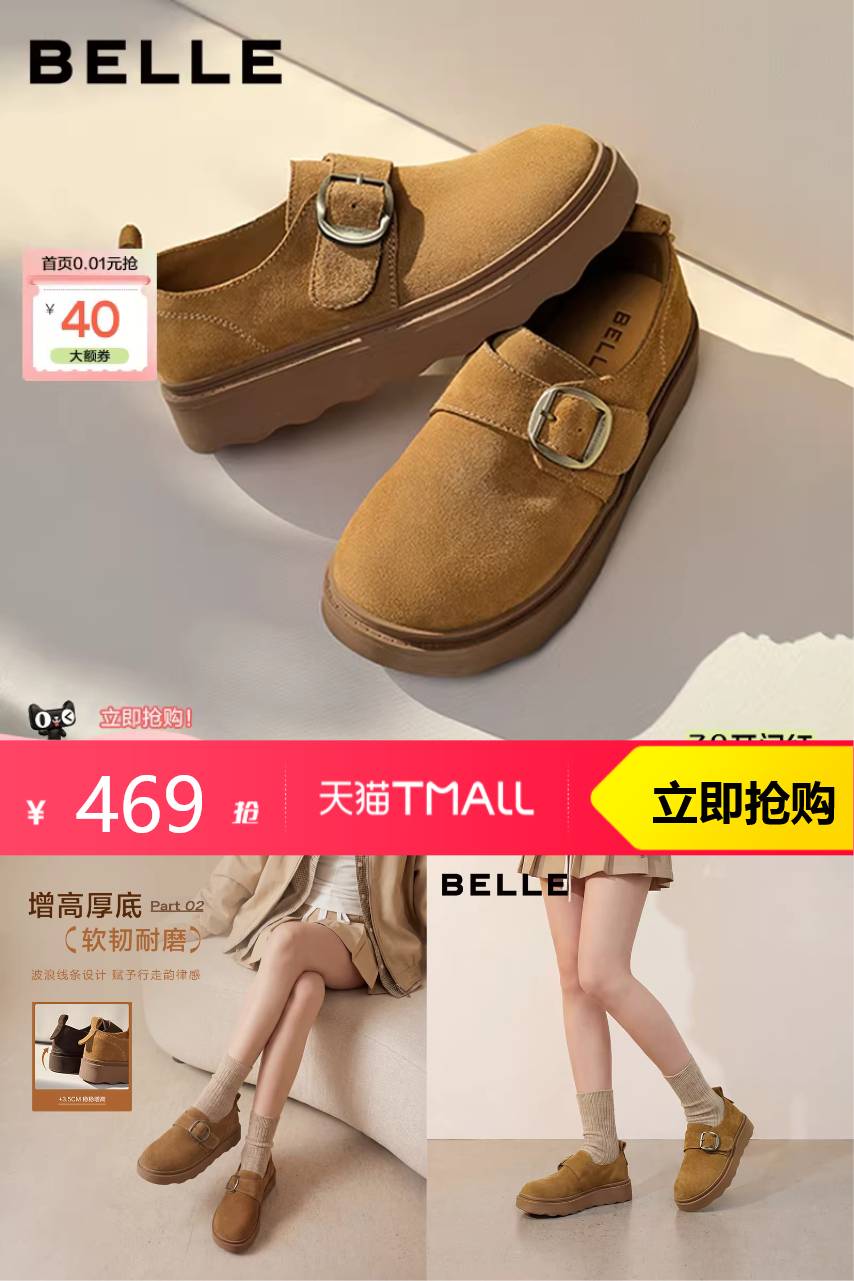 ⭕百丽坚果拿铁厚底勃肯鞋女26春季
