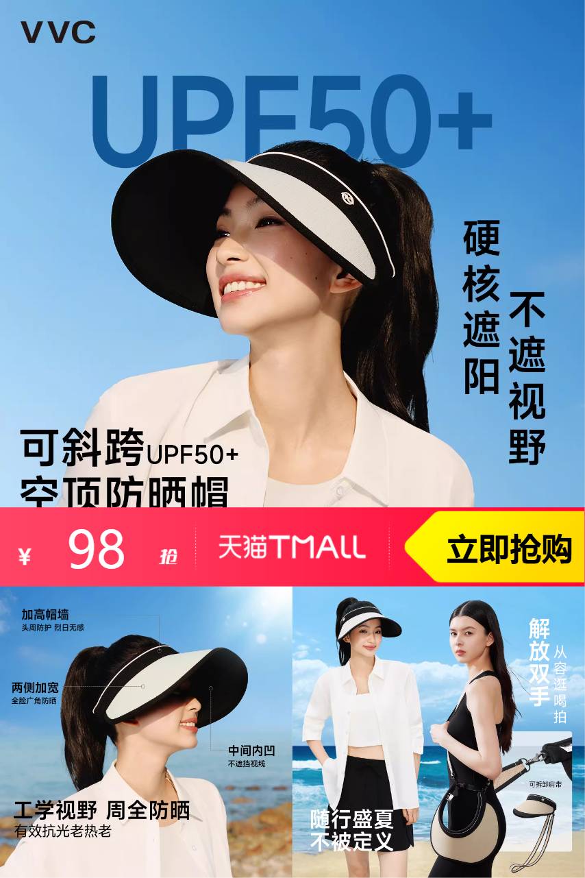 ⭕VVC小香风防晒帽女夏新款海边空顶遮阳