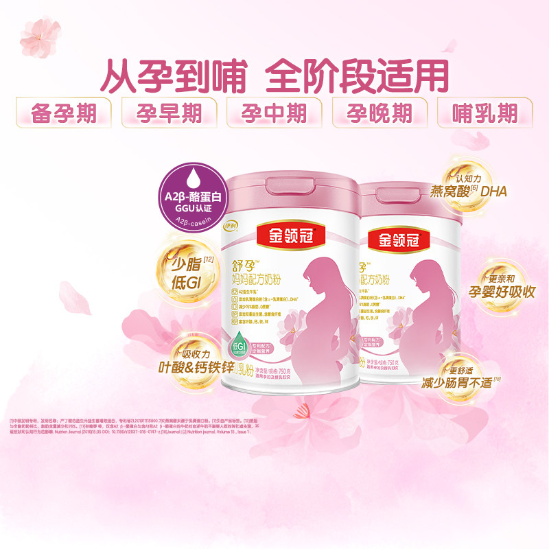 推荐:【含叶酸2罐】伊利金领冠舒孕妈妈奶粉