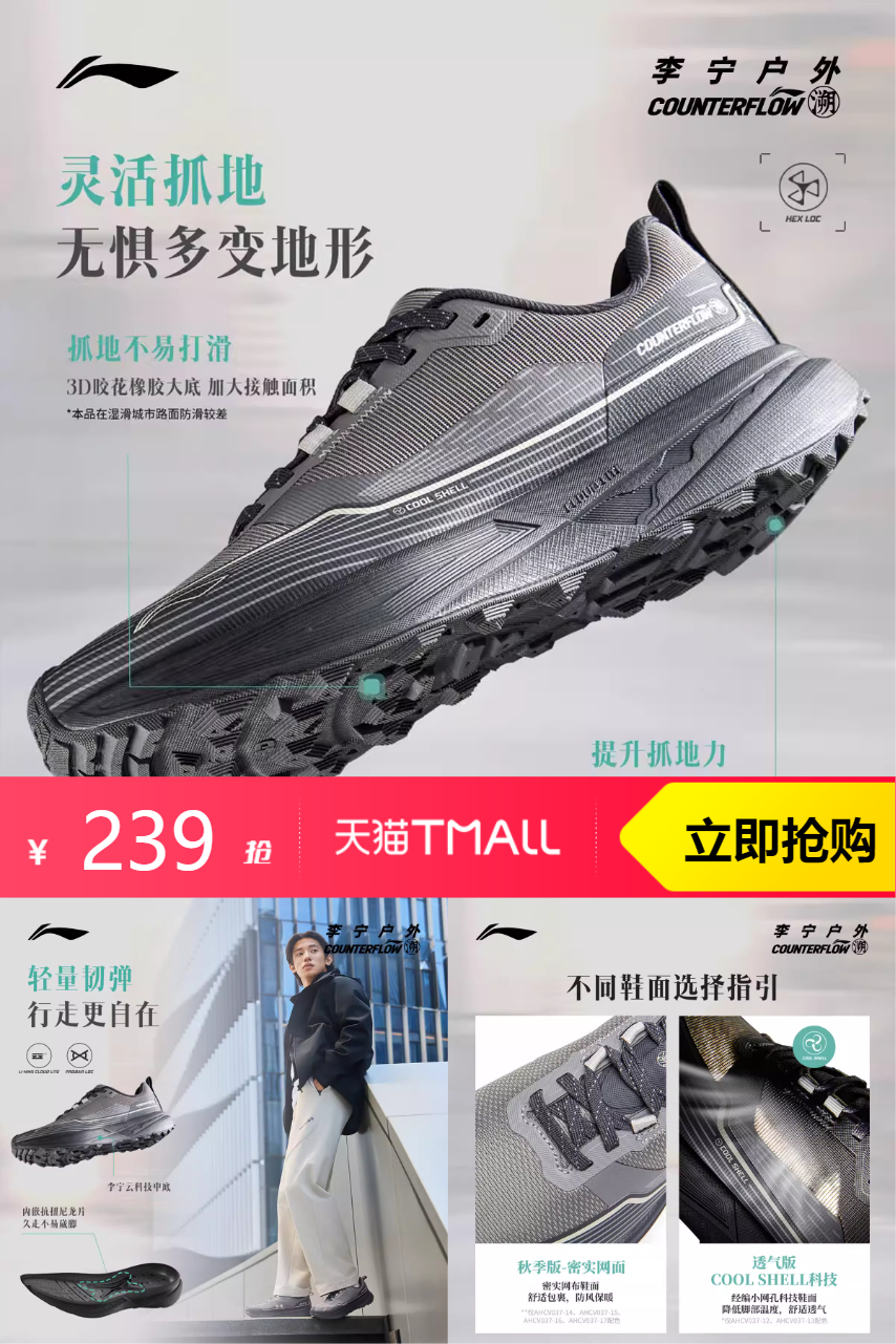 ⭕李宁户外CF溯丨行际休闲鞋低帮经典通勤鞋