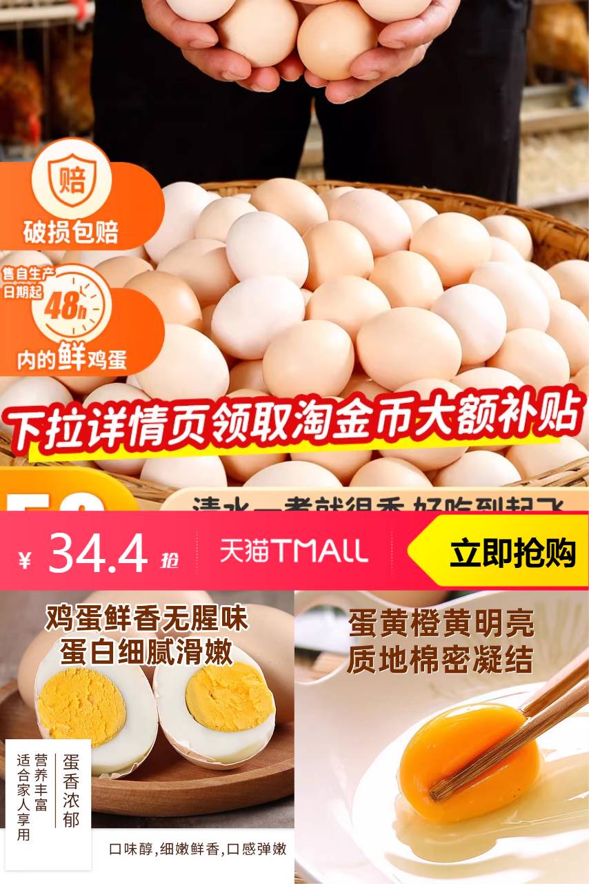 【原价39.9-大额淘金币抵扣5.5-凑满2000-200消费券抵扣3.12=31.28,折0.6/枚】农家散养鸡蛋,山林散养,新鲜50枚笨鸡蛋,味道鲜美。急速送达