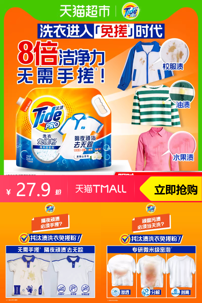 【原价49.9-直降17-商品5元券-3.98元淘金币-88vip1.2元=到手价22.72】汰渍洗衣免搓粉洗衣粉非皂粉1.65kg,8倍洁净力,无需手搓!这款洗衣粉的优点太多了!它含有独特的去污成分,可以深入纤维,去除顽固污渍。同时,它还具有护色功能,让衣物保持鲜艳如新。如果你还在为洗衣烦恼,不妨试试这款汰渍洗衣免搓粉吧!相信你一定会爱上它的!