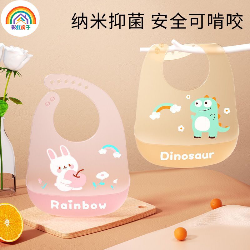 推荐:彩虹房子宝宝吃饭围兜轻薄防水婴儿童辅食饭兜硅胶免洗围嘴口水巾