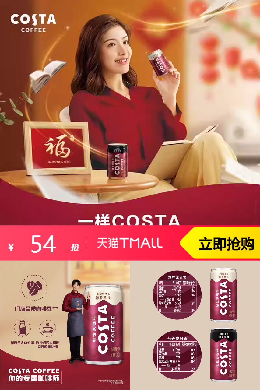 【官方立减20.8,淘金币抵扣1.49,首单礼金3元,消费券抵扣6.51后到手43,到手一共180ml*12罐】这款COSTA咖世家即饮咖啡采用低糖低脂肪配方,口感顺滑醇香,轻松享受咖啡魅力。美式与拿铁风味巧妙融合,平衡层次感十足,不苦不腻,更适合日常饮用。每罐独立包装,方便携带又保持新鲜,是健康轻负担的咖啡选择。无需冲泡,开盖即饮,快速唤醒活力
