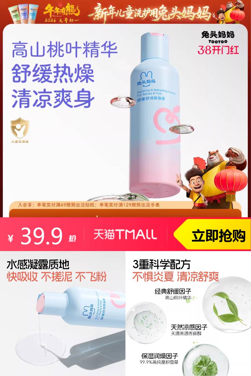 【淘金币可抵1.79,到手38.11,有随机限时红包,可叠加消费卷,极至到手33.16】这款产品的好处真的太多了!首先,它具有很好的保湿效果,能够保持宝宝肌肤的水分平衡。其次,它还能有效舒缓肌肤不适,让宝宝在炎热的夏天也能感到舒适和凉爽🌬。