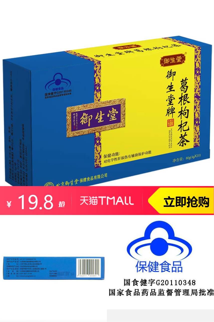 【淘金币可抵4.54,到手15.26】寻找一款养肝护肝的好茶?16袋/盒的北京御生堂葛根枸杞茶是您的不二之选!