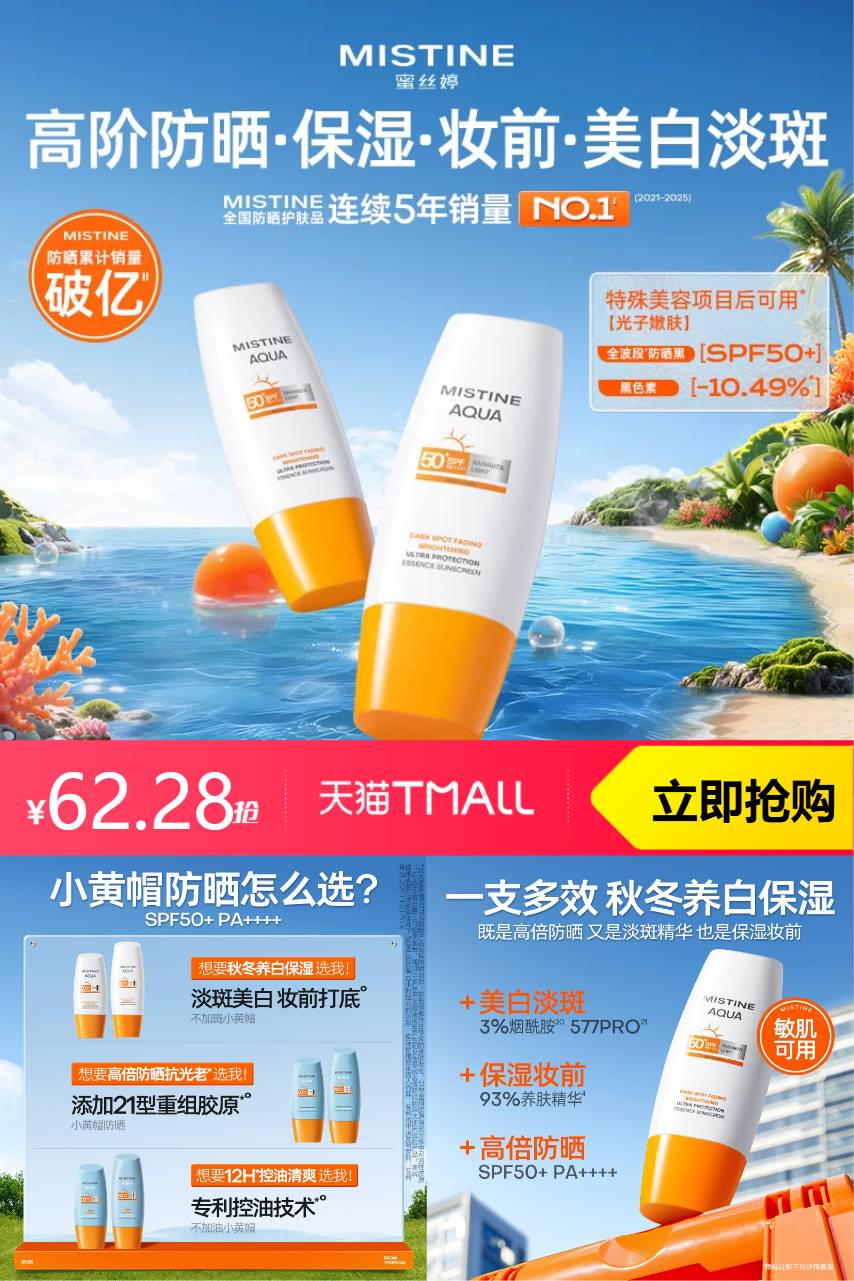 【有9.3折无门槛限时券,叠200-25消费券,88vip到手48.16】清爽成膜不粘腻,混油敏肌也能冲,养肤不闷痘还不加斑,一整个夏天的防晒都安排明白啦!