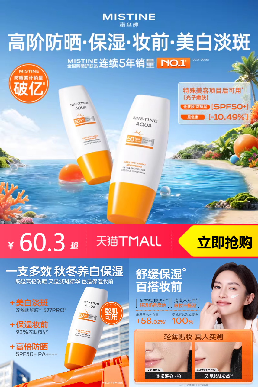 拍两件!蜜丝婷不加斑精华防晒霜40ml 234元减164.7 商品纠错
