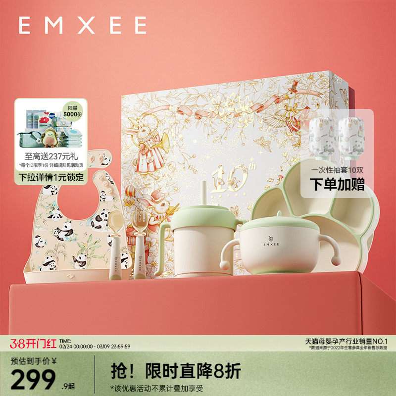嫚熙十周年特别推出儿童餐具礼盒套装,包含水杯、辅食碗、餐盘、叉勺、围兜等一应俱全,为宝宝提供的用餐体验。这套礼盒不仅设计精美,而且实用性强,适合各种场合使用。作为新手父母或准备给新出生的宝宝选购的份礼物,这款套餐是您的。
