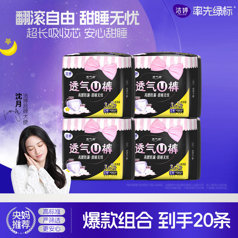 推荐:【沈月同款】洁婷安心裤透气U裤高腰安睡裤女夜安裤旗舰店正品K2