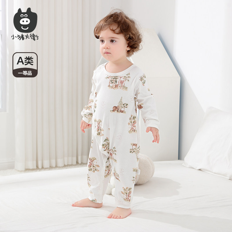推荐:小猪大卫2025新生婴儿纯棉连体衣男女宝可爱哈衣长袖春秋印花爬服