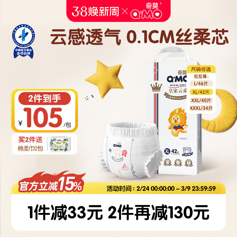 推荐:奇莫云柔拉拉裤L-3XL云感透气丝柔透气尿不湿婴幼儿小麦精华春夏