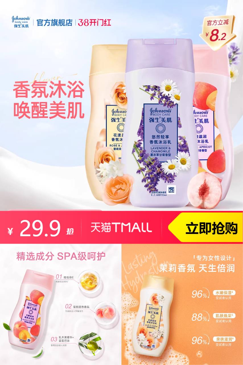 强生美肌 强生沐浴露200g*3瓶 68.1元减8.2 商品纠错