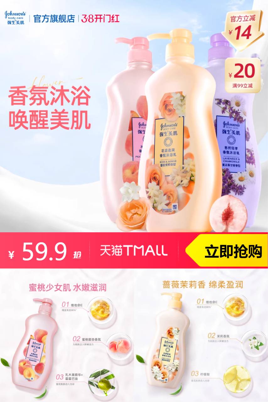 强生美肌 强生沐浴露强生美肌香氛水嫩720g*3瓶 113.9元减14 商品纠错