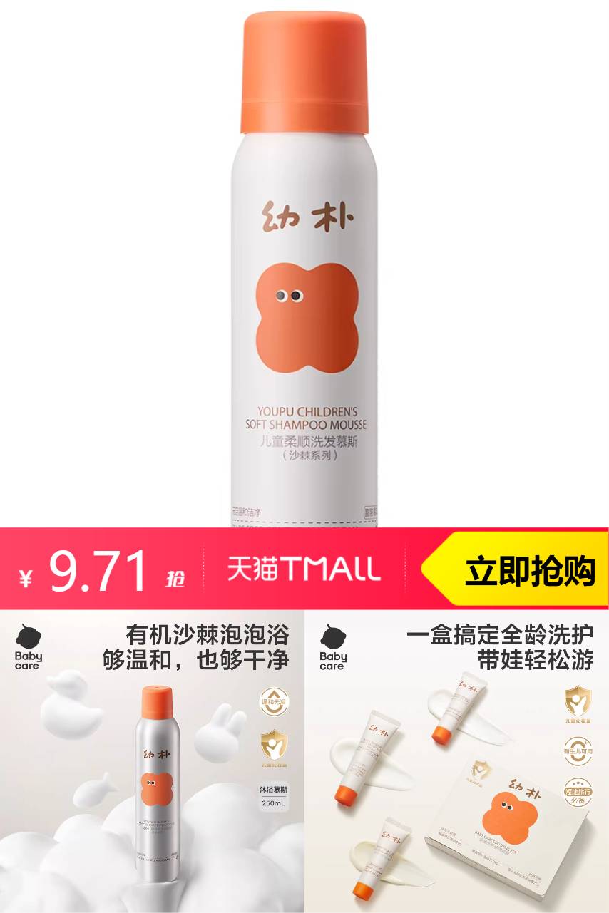 【叠加淘金币0.19到手9.71】babycare幼朴儿童洗发水宝宝专用女孩男童柔顺洗发露护发素二合一,野生沙棘果油,无泪配方,温和不刺激,柔顺发丝!洗出天生好发质!