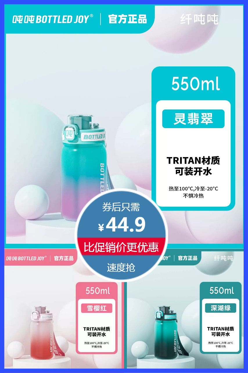 立减40元,88会员淘金币叠加劵到手41.76元!吨吨渐变色便携水杯550ml,多色可选,进口Tritan,一盖双饮,冷热都能装,清新无异味!